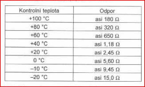 Pokud je tam čidlo jako na obrázku, tak hodnoty jsou dle tabulky... je to z knihy Jak na to