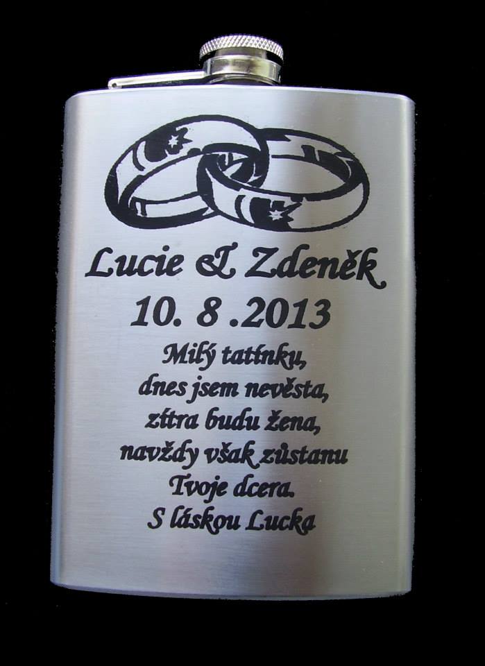 NOVINKA!! Díky přenastavení optiky laseru ,dokážeme dělat fotky i do oblých tvarů ,jako jsou např. šampusky.Sada svatebních skleniček s fotkou 500 kč.