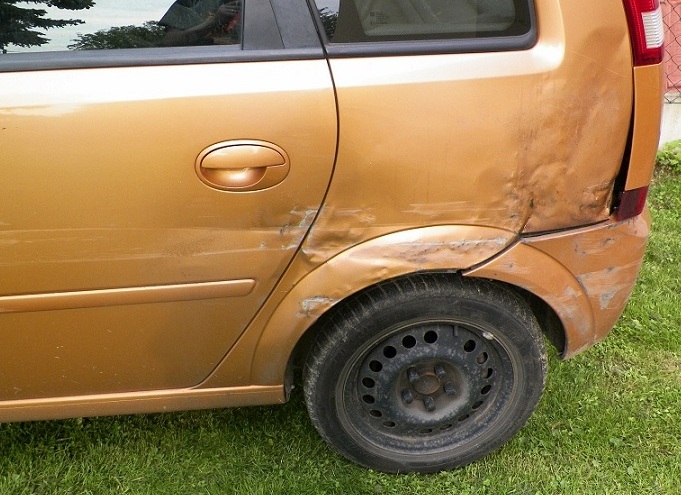 bouchnutý přední nárazní, odřené dveře a bouchnutý levý zadní roh (ten bolí nejvíc)