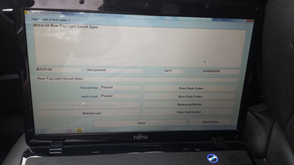 B2535 - Rear Fog Light Circuit Open - zkontroluj zda tam mas zarovku co tam patri (mam dojem 21W). Nekdy se tato chyba objevi i pri spatnem kontaktu.