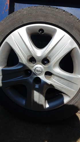 Prodám originál plechové disky včetně tvarovaných poklic (na první pohled vypadají jako alu), obuto ziními gumami Mischelin, rozměr 225/50 R17, rozteč šroubů 5x120. Zimní gumy jeté jednu zimu - cca 2000km.