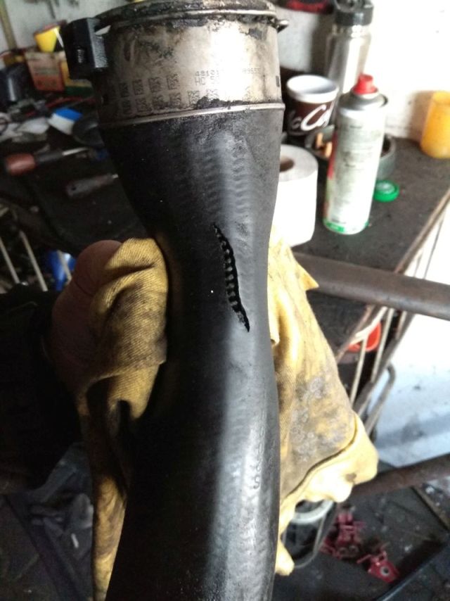 Povedal som si, ok chyba rovnaká, takže to vyzerá dobre. Otvoril som kapotu, skloním sa a už na voľnobehu počujem unikať vzduch .Turbo je viacmenej umiestnené v strede, trošku viac vľavo (z pohľadu - stojím pred kapotou a pozerám