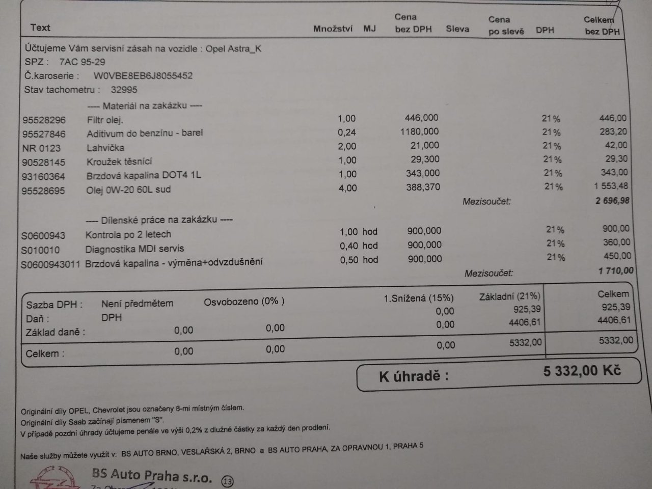 Prohlídka po 2 letech. Byl jsem u Tukase ve Štěrboholech. Dá se vyjednat sleva 5% na materiál a 15% na práci. I tak mi to prijde hodně. Blblo mi autorádio, a olej hlásil 5%.