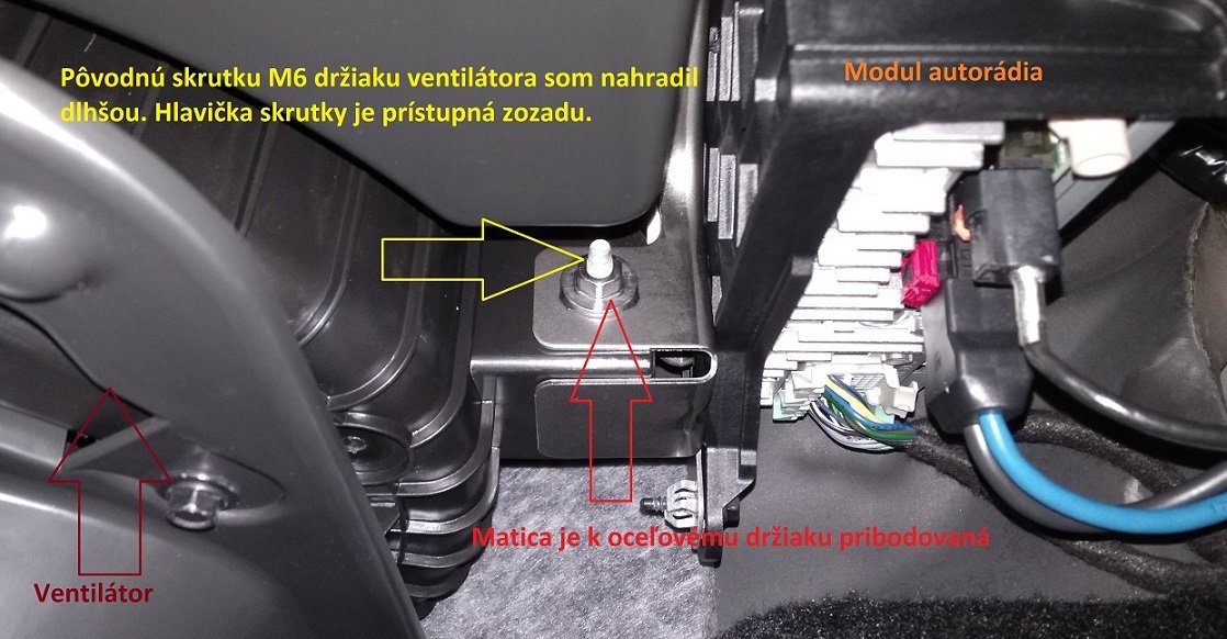 Pri tej práci je samozrejme dobré odmontovať schránku spolujazdca, drží na piatich skrutkách so šesťhrannou 7mm hlavičkou a ešte navrchu na dvoch pružných úchytoch. K dvom skrutkám napravo sa dostanete odtrhnutím bočného krytu, na ktorom je vypínač spolujazdcovho airbagu. Ničoho sa netreba báť ;) Však keď si potrebujete vymeniť peľový filter, tak toto je cesta, potrebujete si to nacvičiť :mrgreen: