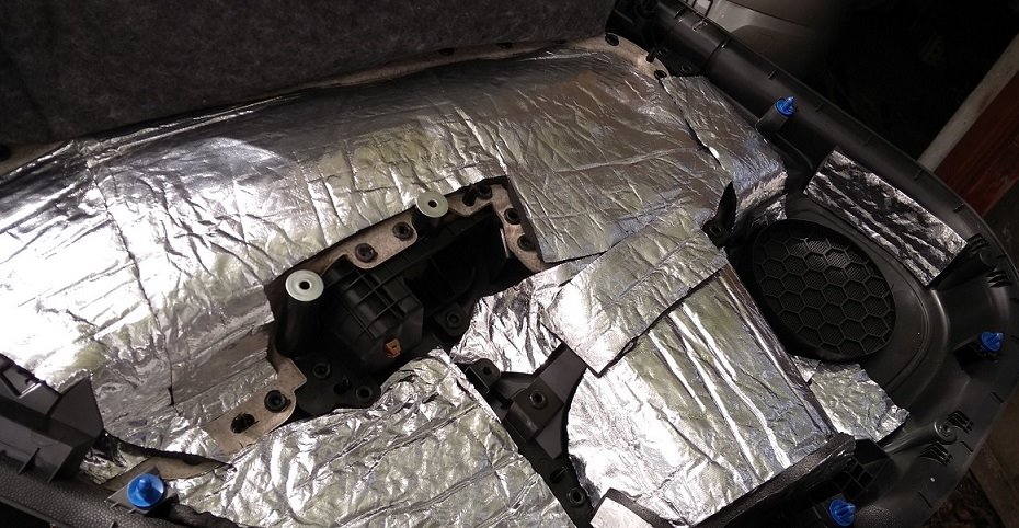 Ja od zadu nízkofrekvenčný hluk nepozorujem, len hluk kolies a aerodynamický hluk, takže pôjdem len do ľahkých odhlučňovacích materiálov pre vyššie frekvencie.
