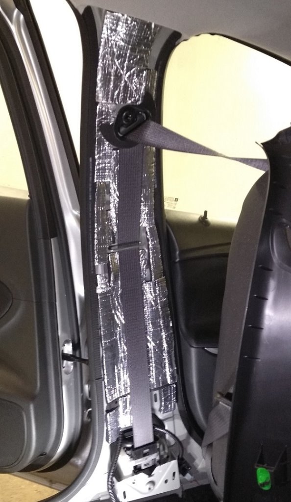 Jedna vrstva Armaflexu - 13mm hrubého sa zmestila na stĺpik pod pás, zároveň takto došlo k uzavretiu veľkého otvoru, kde je vložený snímač bočného nárazu.