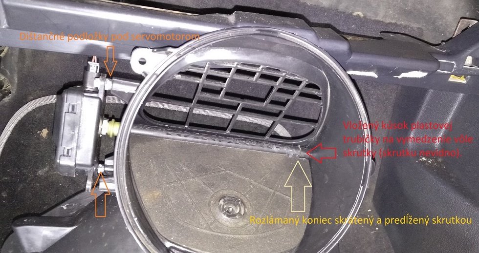 Otočil som klapku zdravým koncom smerom k servomotoru, vypiloval drážku pre unášanie a ten rozlámaný koniec klapky predĺžil skrutkou do dreva, aby dotiahol do svojho puzdra v skelete klapky.