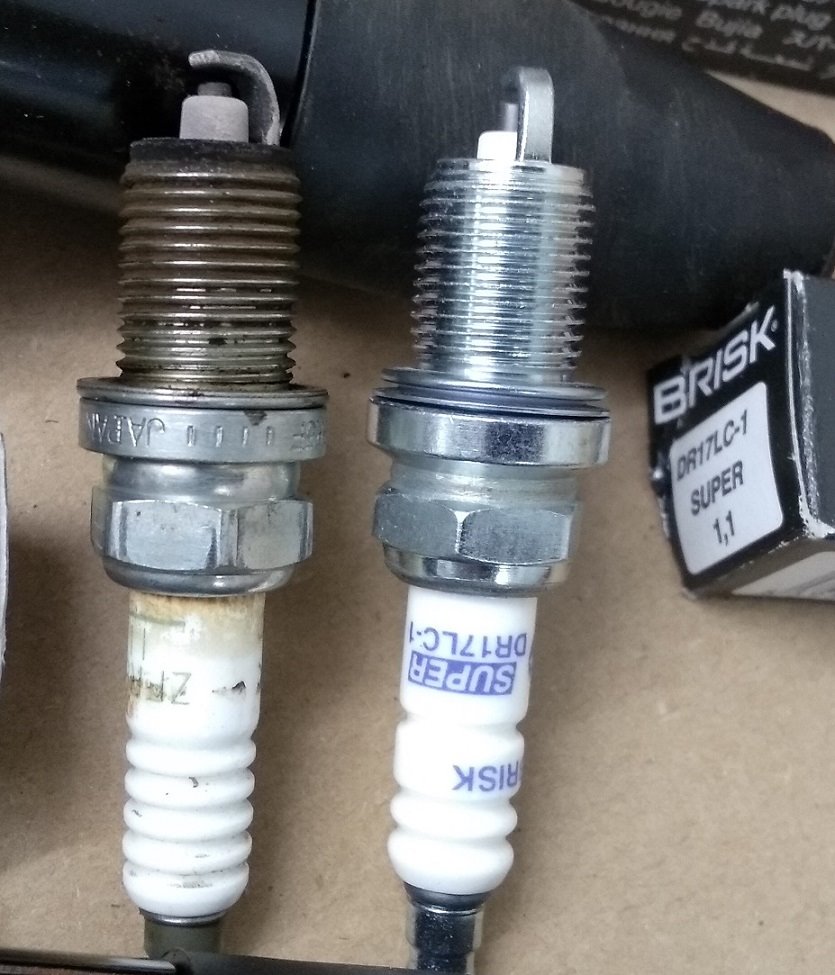 menil som sviečky a na starej sviečke z tretieho valca nie je čierny karbón v takom množstve, ako na prvej, druhej a štvrtej sviečke.