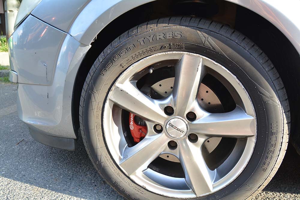 Fotky nových brzd na autě. Omluvte stav kol, díváte se na 11 let provozu v rukou cca šesti různých řidičů...