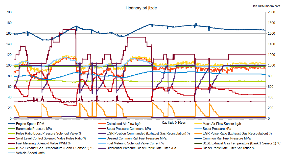 Bohužel, nikdo mi zaznamenaná data z běhu motoru CDTi (1.9) asi neposkytne, tak zkusím požádat, jestli by se nějaký odborník podíval na moje data a poradil mi na základě uvedených hodnot, co by mohlo být příčinou malého (ani ne polovičního) výkonu motoru, nejde do otáček a hlásí chybu Ecn023456 tj.