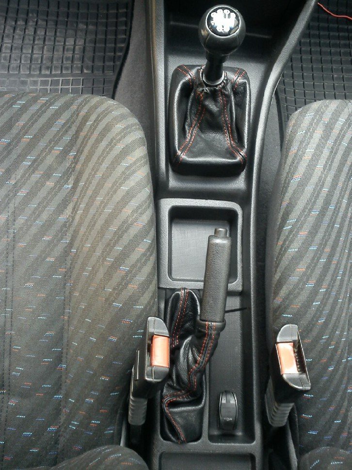 Řadicí páku jsem nacvakal obyč koníkem, rámeček je tenký, ruční brzda byla horší. Nechtěl jsem lepit, neumím to. Tak jsem prvně uchytil vruty průměr 3mm, nakonec jsem ji ale nanýtoval.