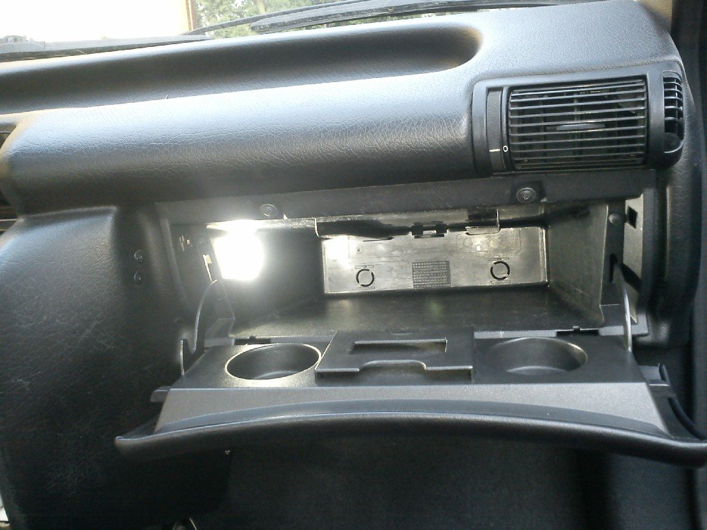 Osvětlení přihrádky spolujezdce. Chybělo sklíčko i konektor. Obojí jsem použil z dárce, pěkně nakrimpoval od píky jak z fabriky.