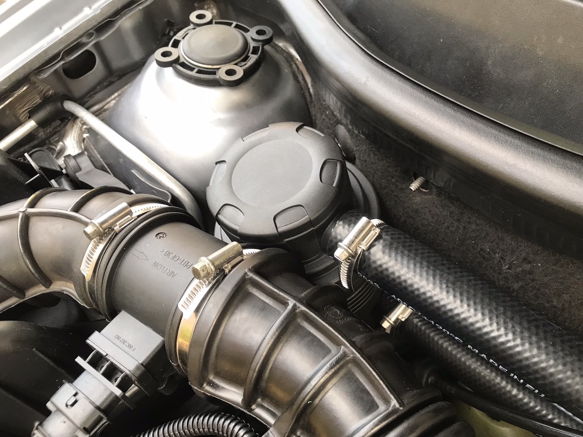 Na tenhle den jsem se dlouho těšil. Nejpřínosnější upgrade, kterej jsem kdy na svým autě udělal - profi odlučovač oleje ProVent 200 od MANN+HUMMEL s výměnným filtrem a přetlakovým ventilem. Cena vcelku zběsilá (6.040 Kč + 2.200 Kč instalační materiál), ale za klid a vědomí, že to sání zůstane už navždy čistý, mi to definitivně stojí... 8-)