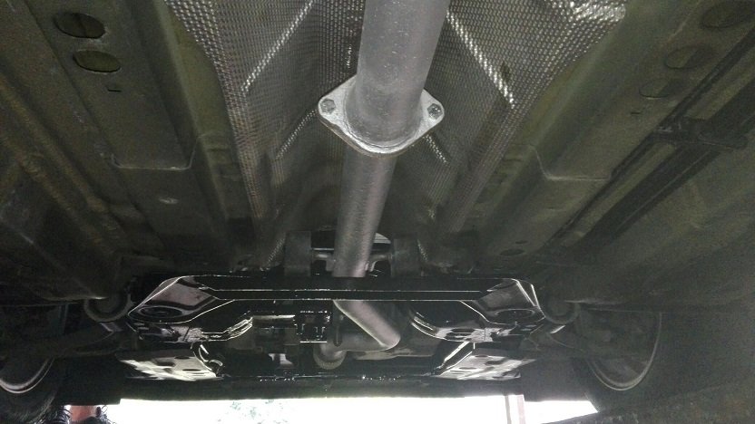 Výfuk namontován, nové spojovací trubky taky a i to těsní, takže OK, jen jsem nechal původní těsnění mezi přední přírubou a tam to trochu fouká, takže už jsem objednal novou a jakmile dorazí, tak vyměním. Taky jsem očistil zadní nápravu a natřel.