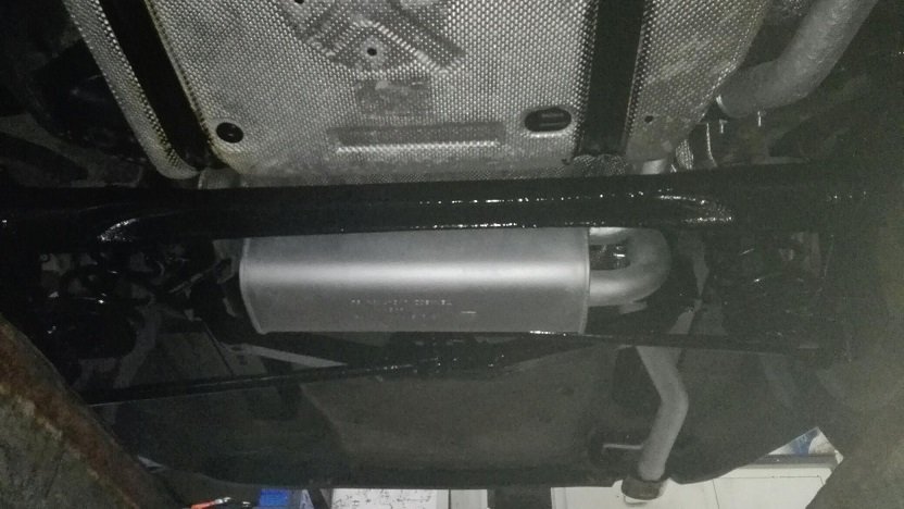 Zítra jej namontuji zpátky na místo, musel jsem dokoupit 2 ks spojovacích objímek, jedna je 55 mm a druhá 50 mm a taky když už je výfuk dole, tak jsem kompletně natřel všechny kovové díly podvozku novým nátěrem, například barva na zadní nápravě už taky nebyla v nejlepší kondici.