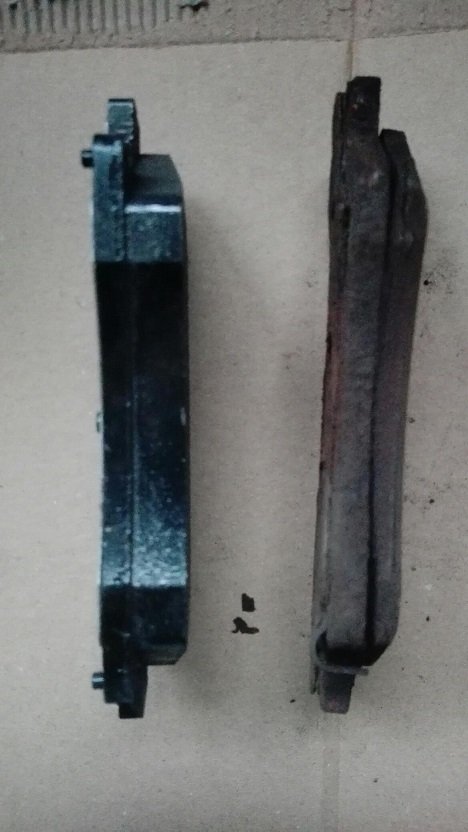 Přední nové - tloušťka 18 mm, přední ojeté 15 mm