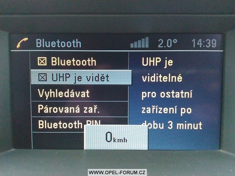 Opel Mobile Phone Portal podporoval pouze Bluetooth™ Handsfree Profile verze 1.0