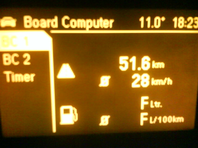 Po nastartování místo dojezdu skočilo velké písmeno F a to i v BC průměrné spotřebě a ujetých kilometrů.