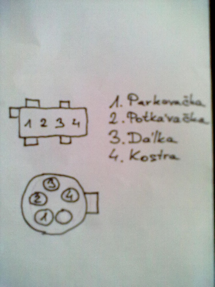 Přikládám sem znovuobjevené schéma zapojení př. světel u předface a poface verze. Konektor pro motůrky náklonu je stejný.