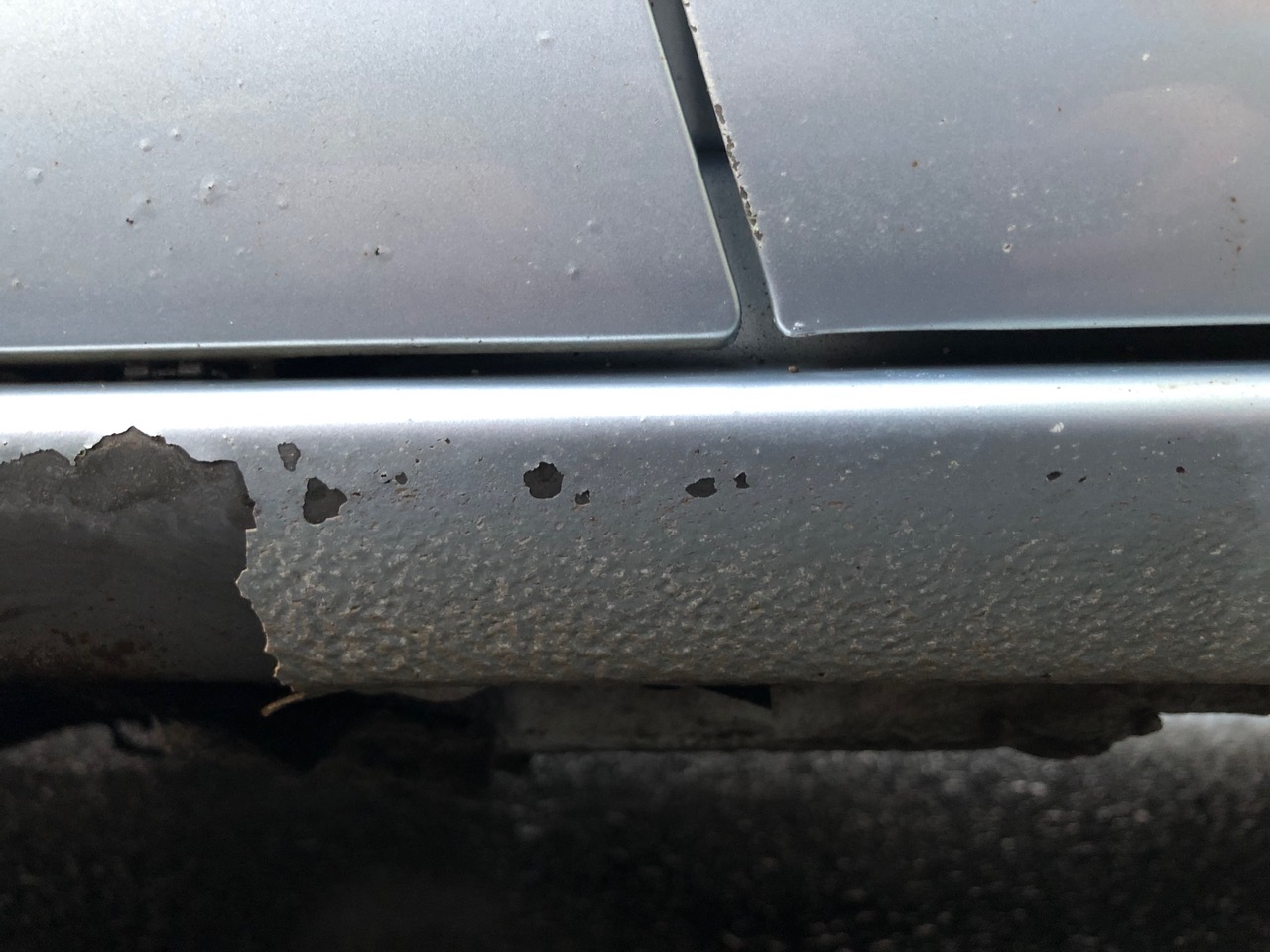z těch fotek je zřejmý že je to osekaný od kamínků (je vidět jak je z plastizolu osekaný lak, taky přední hrana dveří je zjevně osekaná), jezdíš někde po štěrkový cestě nebo někde kde se v zimě sype drtí?
