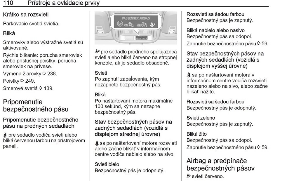 Bliká bíle nebo šedě - bezpečnostní pás byl rozepnut, (možná to za jízdy začne pípat ale není to popsáno).